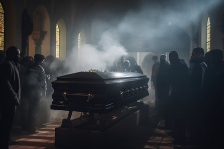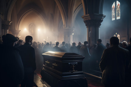 Casket in a church during a mourning procession or burial of a dead person