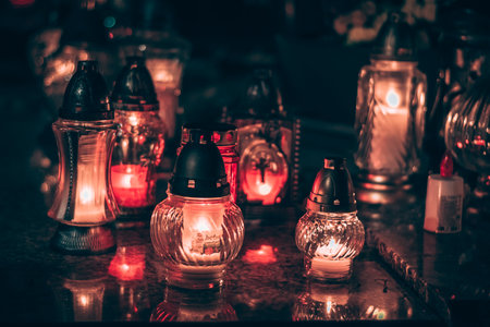 Many candles kindling at a cemetery on All Saints' Day