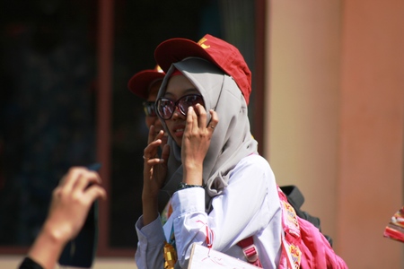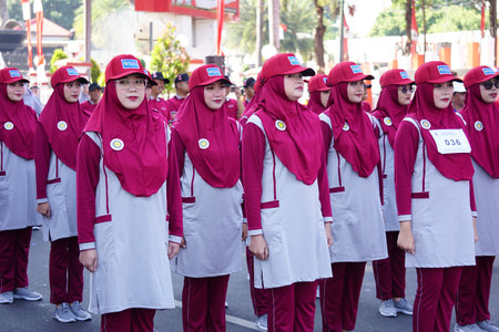 Indonesian participating in marching (baris berbaris) to celebrate Indonesian independence day