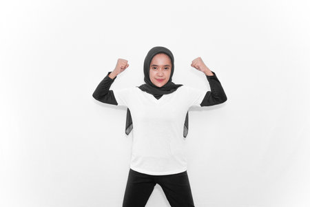 asian women hijab put hand isolated white background