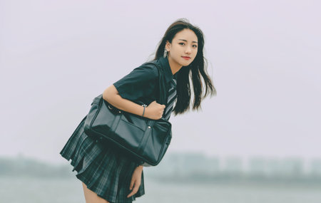 japanese teen beautiful girl in student smile and relax