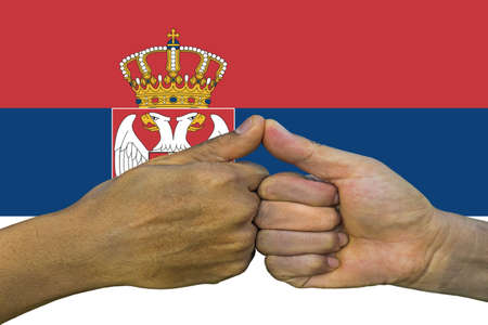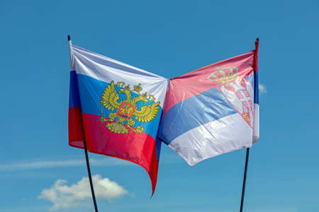 Russian and Serbian Flags Together Symbol at Blue Sky