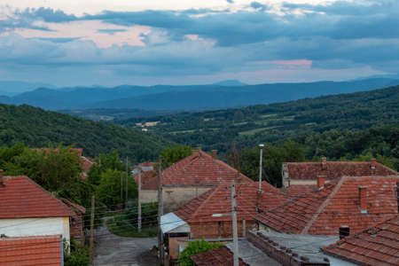 View from the village of Zorunovac. Panorama of a rainy and cloudy day.