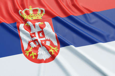 Serbia flag. Wavy fabric high detailed texture. 3d illustration rendering