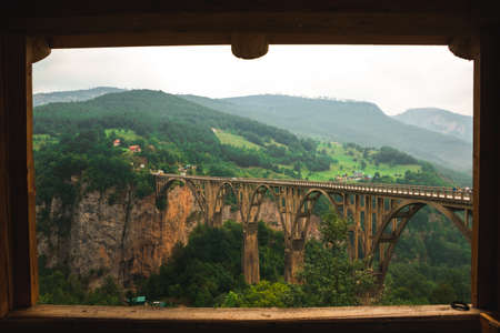 Old big bridge in Durdevica and fantastic view Tara river gorge - is the biggest one canyon in Europe in the national park Durmitor, Montenegro. Balkans. Beauty world.