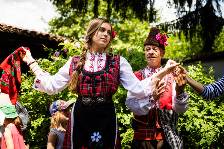 Veliko Tarnovo, Bulgaria - April 28.2016: People with traditional costumes of the region celebrate Easter.