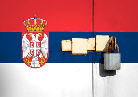 Serbia flag is on texture. Template. Coronavirus pandemic. Countries are closed. Locks.