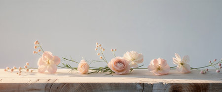 AI Generated. Soft Floral Decor with Pastel Pink Flowers