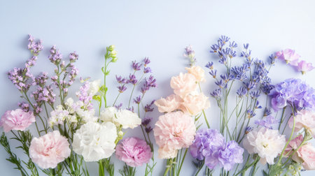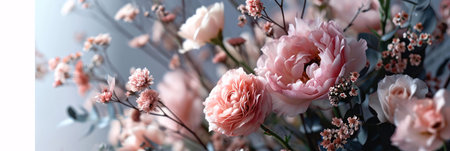 A stunning floral arrangement featuring an array of colorful blooms set against a soft pastel background, evoking a sense of elegance and tranquility in nature.
