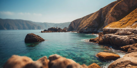 AI Generated. Dramatic rocky cliffs overlooking a serene turquoise sea