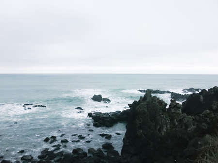 Vibrant beautiful coast of sea of Japan . Ocean horizon. Nautical background