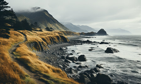 AI Generated. Scenic Coastal Route with Breathtaking Ocean Views and Rocky Cliffs