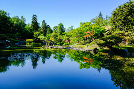 reflection of Japanese Garden in a pond