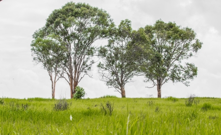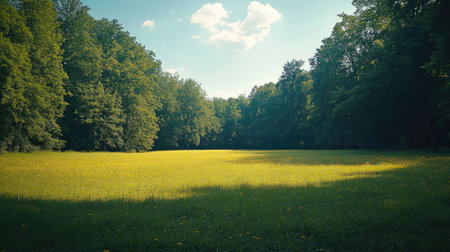 Idyllic Serenity: The Verdant Field Amidst Towering Trees