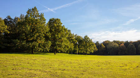 City park, autumn, Munich, Germany. View of grass field and trees in the afternoon
