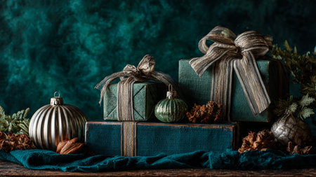 A warm and inviting holiday scene featuring neatly wrapped gifts, fragrant elements, and natural decorations, perfect for capturing the spirit of the season.