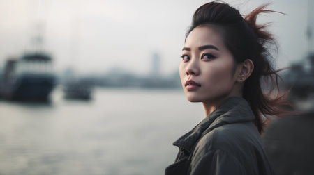 beautiful asian woman in the city, vintage filter and soft focus