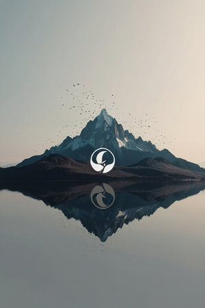 Mountain peak reflected in the water. Conceptual image of nature.