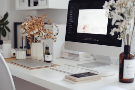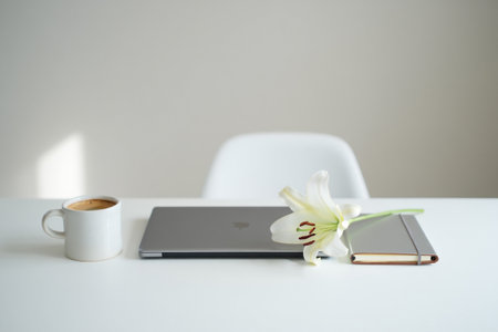 A minimalist neutral-toned workspace, Ai generated image