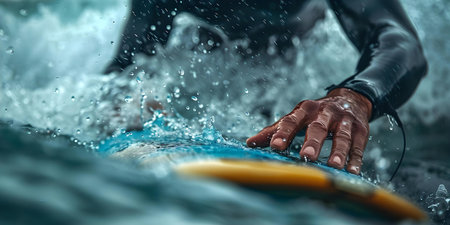 Technical Shot of Surfer Repairing Dinged Surfboard Craftsmanship. Concept Surfboard Repair, Craftsmanship, Technical Shot, Surfer, Outdoor Photography