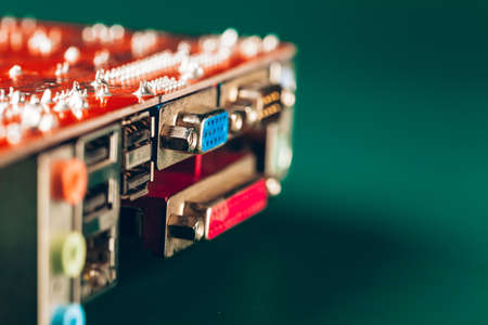 Connector on the computer motherboard for connecting the video cable, connecting the display, vga analog connector, close-up