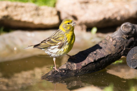 Serin, Serinus serinus, Forest Pond, Spanish Forest, Castile and Leon, Spain, Europe