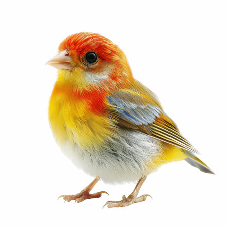 Gloster Corona Canary, Serinus canaria, perched in front of white background