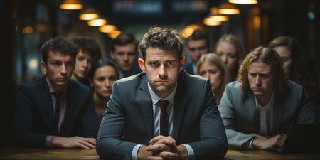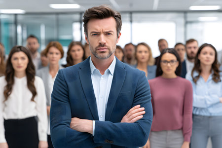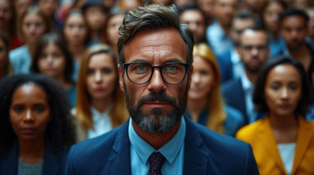 Commanding Leadership: Determined Man at the Forefront of a Diverse Group