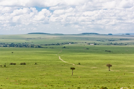 Acacias trees in the meadows of Kenya with clouds in the sky
