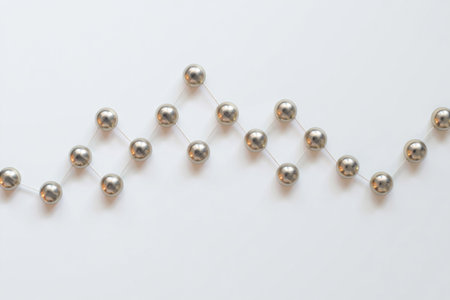 Vividly colored spheres illustrate the connections within a molecular structure, showing the complexity of chemical bonds under soft lighting.