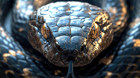 Close up of a Majestic Black Snake with Shiny Scales and Intense Eyes in Natural Habitat AI Generative