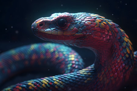 The viper multi colored scales create an abstract, spooky decoration generated by artificial intelligence