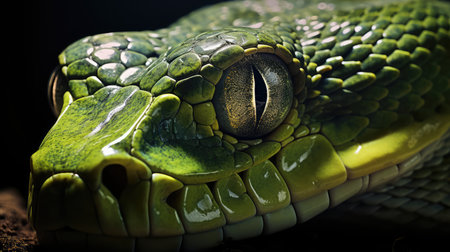 Intense Close-up: Green Snake Head with Textured Scales and Piercing Eyes