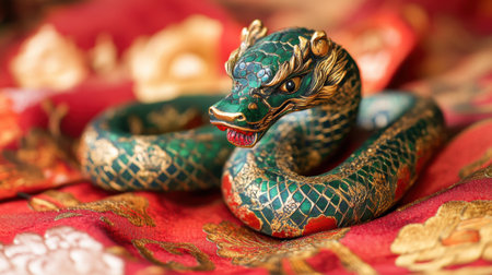 Beautifully crafted green snake with gold details and red tongue, marking the 2025 Chinese zodiac.