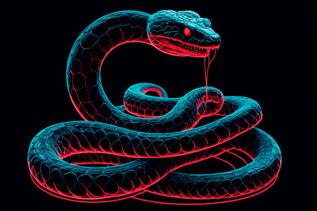 Vibrant Digital Snake Artwork in Glowing Abstract Style with Neon Colors and Geometric Patterns