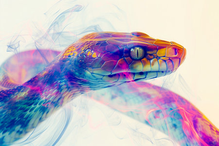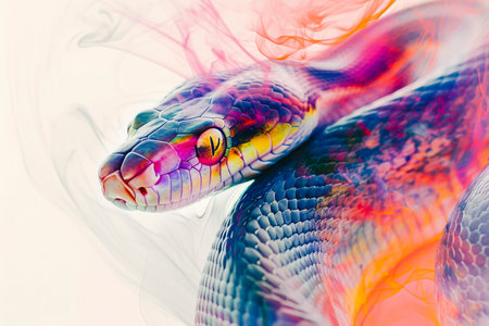 The viper multi colored scales create an abstract, spooky decoration generated by artificial intelligence