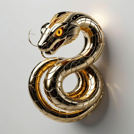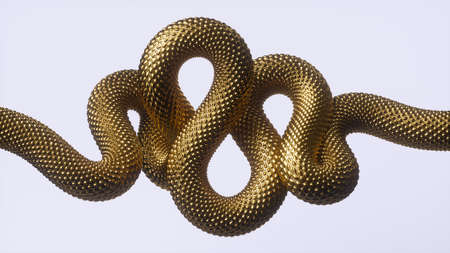 3d render, abstract golden wavy snake isolated on white background, shiny metallic dragon scales, unique wallpaper