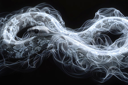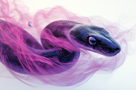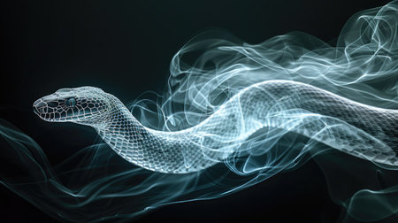 Futuristic Digital Snake with Transparent Whisps of Smoke on Black Background