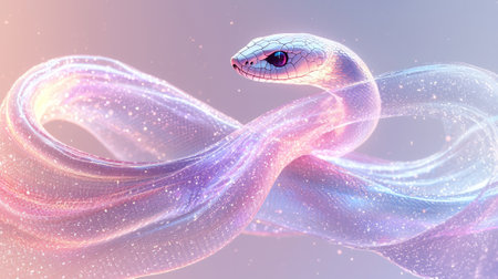 Elegant iridescent snake in motion with pastel glow and glittering scales.
