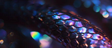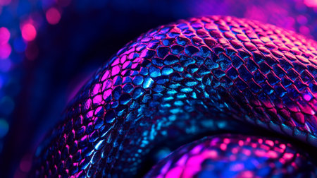 Vibrant blue and violet snakeskin texture with a shiny, reflective surface generative ai