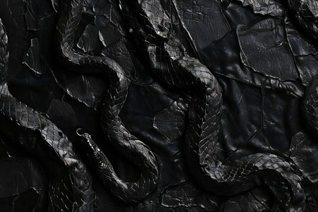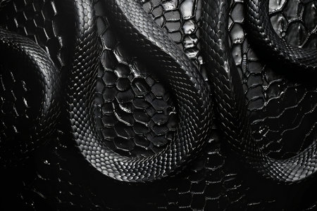 Black snake skin texture background. Black snake skin texture on black leather background.