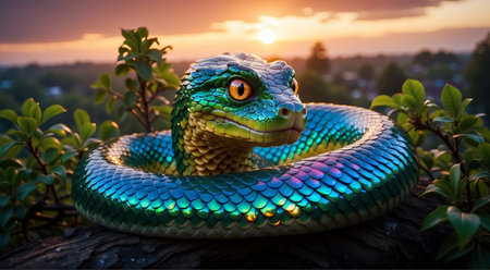 The viper multi colored scales create an abstract, spooky decoration generated by artificial intelligence