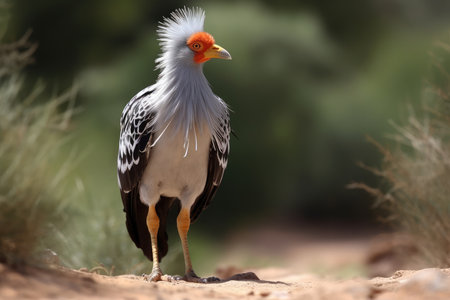 Portrait of a Secretary Bird of Prey with orange face and beautiful crested feathers