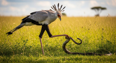 Sagittarius serpentarius, beautiful bird from African savanna