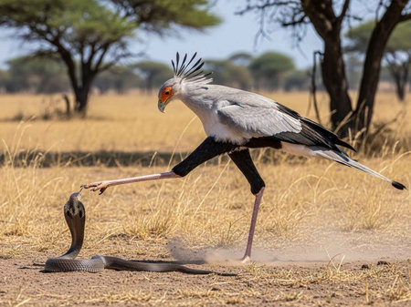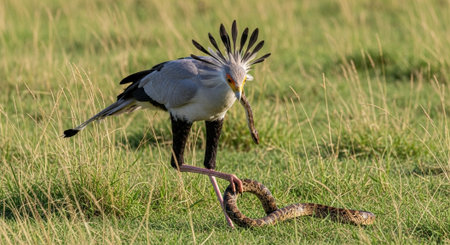 Secretary Bird of Prey with long legs and pretty feathers