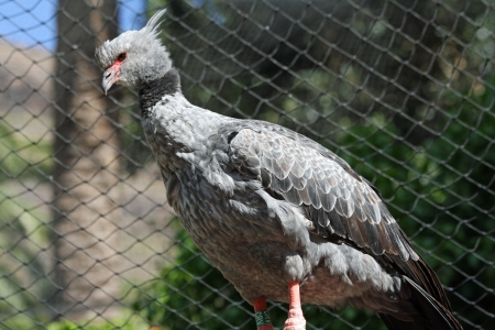 Close-up portrait of Red-legged Seriema, also known as the Crested Cariama Cariama cristata
