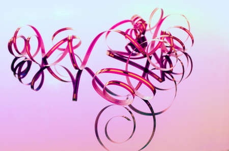 narrow pink ribbon for decoration reflected in the mirror