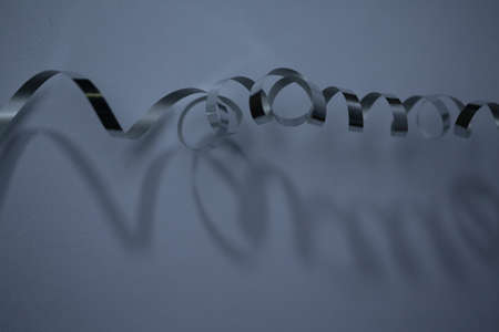 A part of a silver curling ribbon with it's shadow.