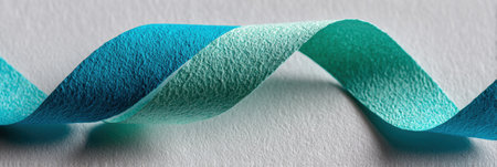 Detailed close-up of a vibrant ribbon loop made from textured paper, displaying beautiful color gradients and curves against a clean background.