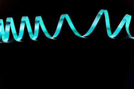 bright blue celebratory ribbon isolated on black background